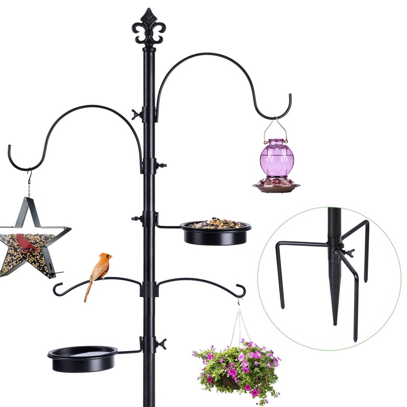 Beautiful multi-feeder stand kit adds additional décor to your outdoor livings and you can comfortably enjoy the pleasure of birds feeding on the comfort of your home. Hanging different types of feeders will attract a wide variety of birds, enjoying hours of beauty and entertainment. Bird feeders not included
