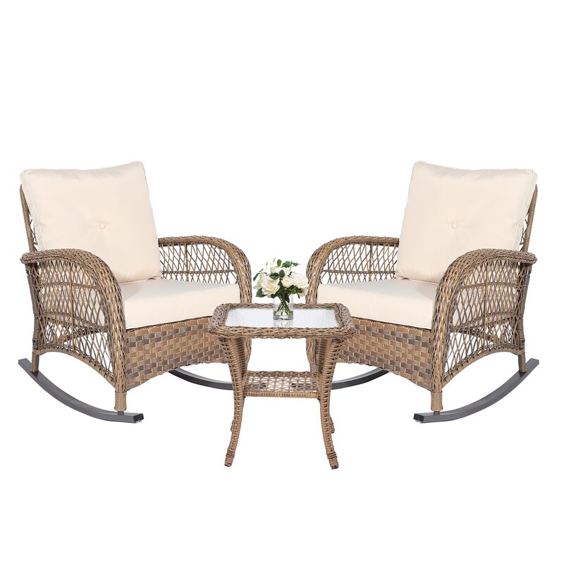 Side Table – 3-piece outdoor rocking chair set includes a matching tempered-glass side table to complement your patio nook and provides an easy-to-clean surface. Besides, this side table has extra storage space for drinks and outdoor meals.
