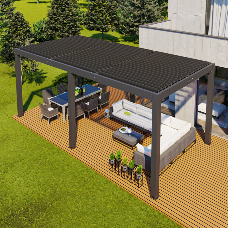 20 Ft. W x 10 Ft. D Outdoor Adjustable Aluminum Louvered Pergola