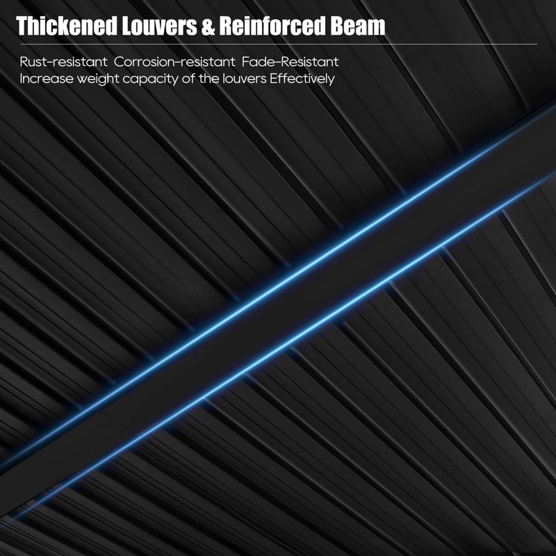 Stable Sturcture: The wind resistance of our Gazebo is up to 50mph. Composed with engineered design, powder coated aluminum frame and sturdy louvers, this pergola is strong and durable enough for long time use.
