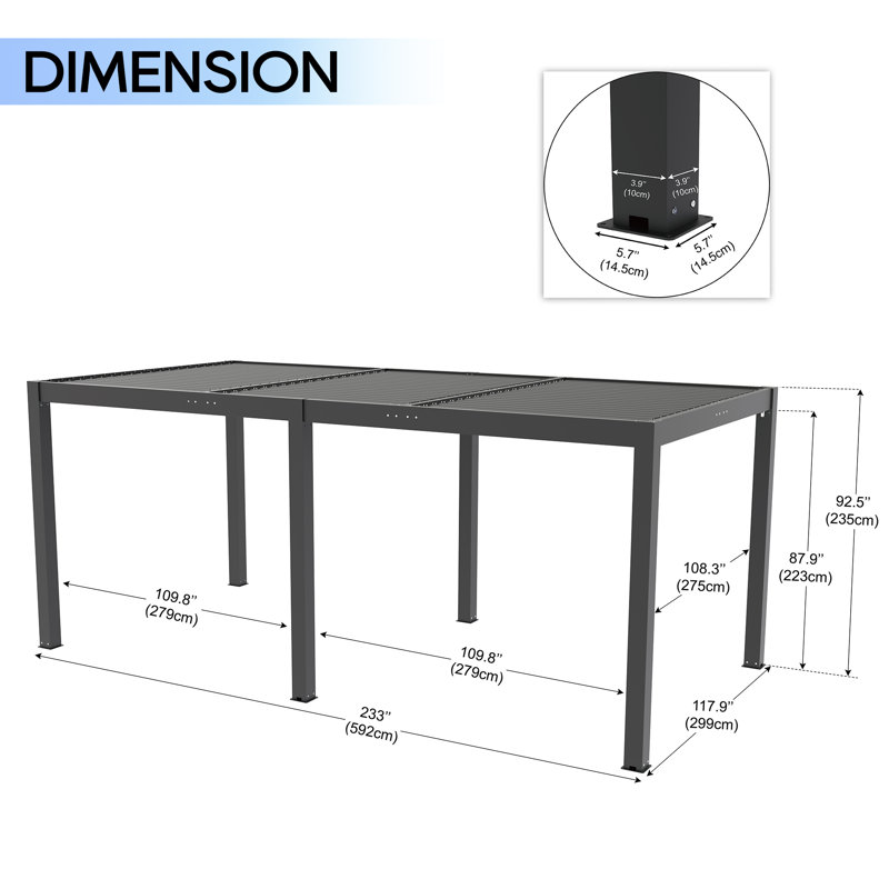 Premium Aluminum Pergola: Made of a powder-coated aluminum frame, our pergola is rust-resistant, fade resistant. and not easy to deform, which is suitable for long-term outdoor use. All aluminum louvered roof pergolas will add modern style to your deck, patio, pool, yard&garden
