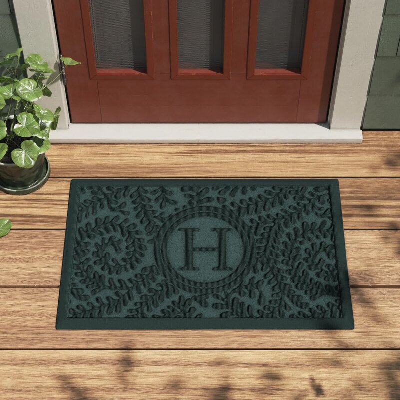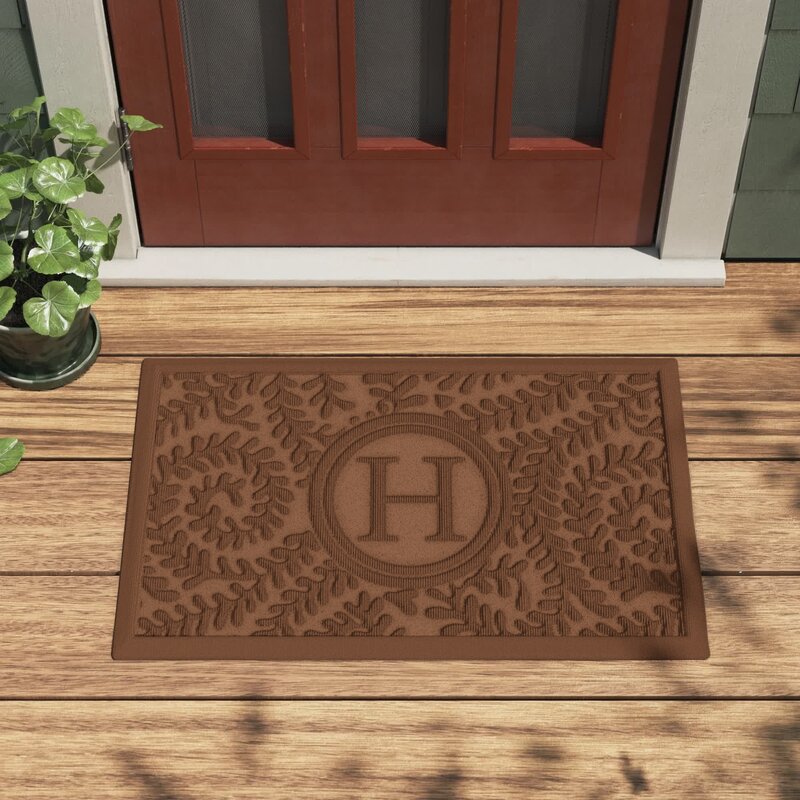 Add a personalized touch to your front door with this classic doormat. Its all-weather design is machine-made in the USA from synthetic fiber, so it stands up to rain and snow, and it comes with a rubber backing that prevents slipping and sliding. This rectangular-shaped rug has a floral-inspired design in a variety of colors to choose from that allows you to personalize it with the letter of your first name or last name. Plus, this mat comes with a low 0.37″ thickness that makes it easy to clean with a broom or yard hose.
