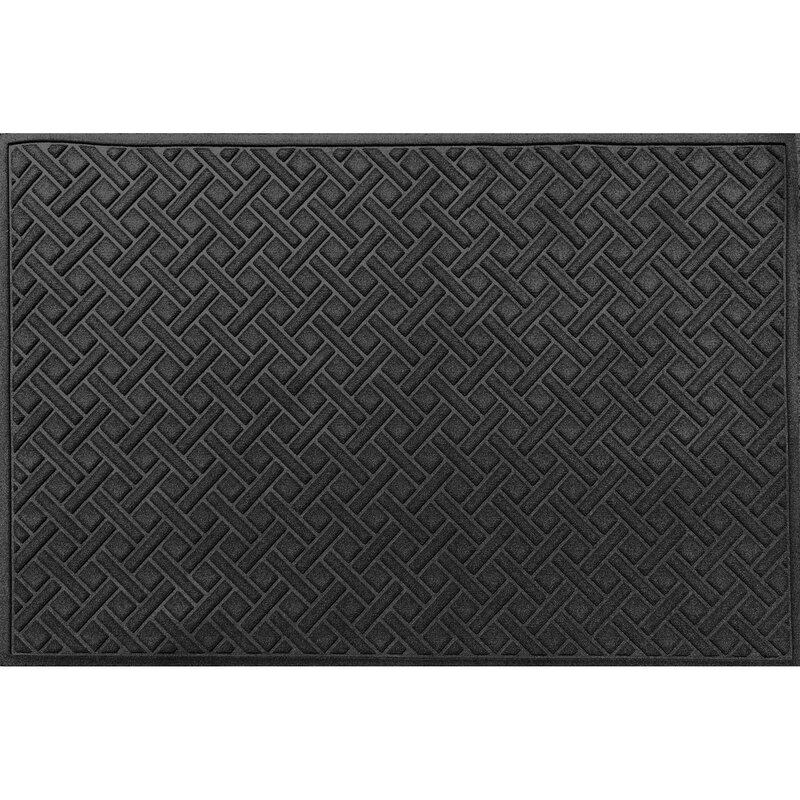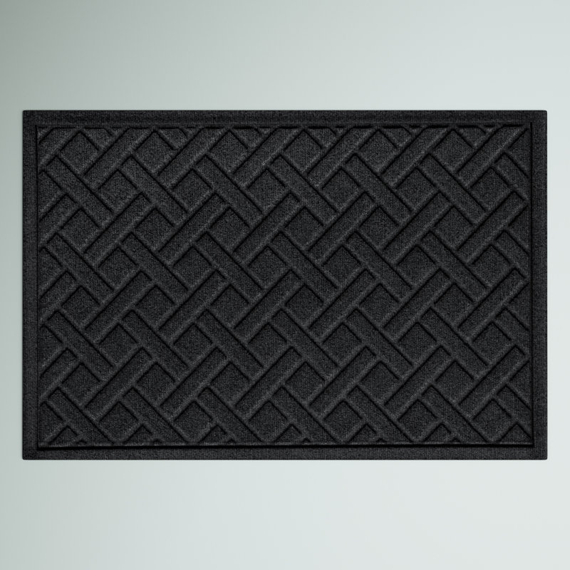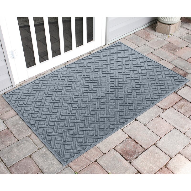 This doormat helps keep water, dirt, mud, and grime from entering your home. It’s made in the USA from synthetic fiber with an eye-catching basketweave pattern that traps and collects up to a gallon of water from boots, shoes, and paws. This rectangular, all-weather doormat also features an anti-slip rubber backing, and it comes in a variety of solid hues to suit your style and match your entryway’s looks. It has a thickness of 0.25″, making it a durable addition at your front or back door, in your garage, or out on your patio.
