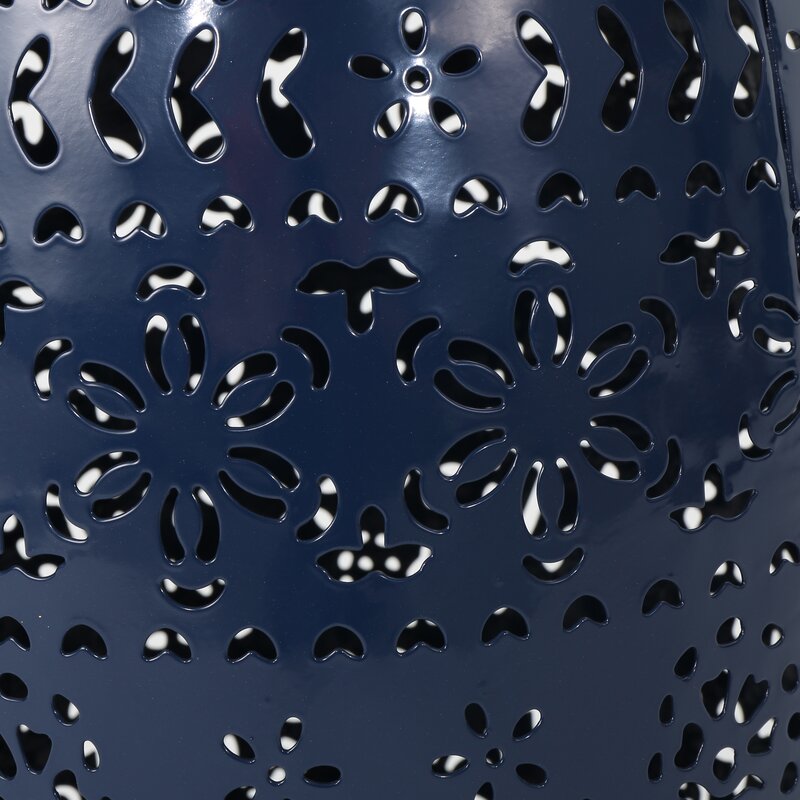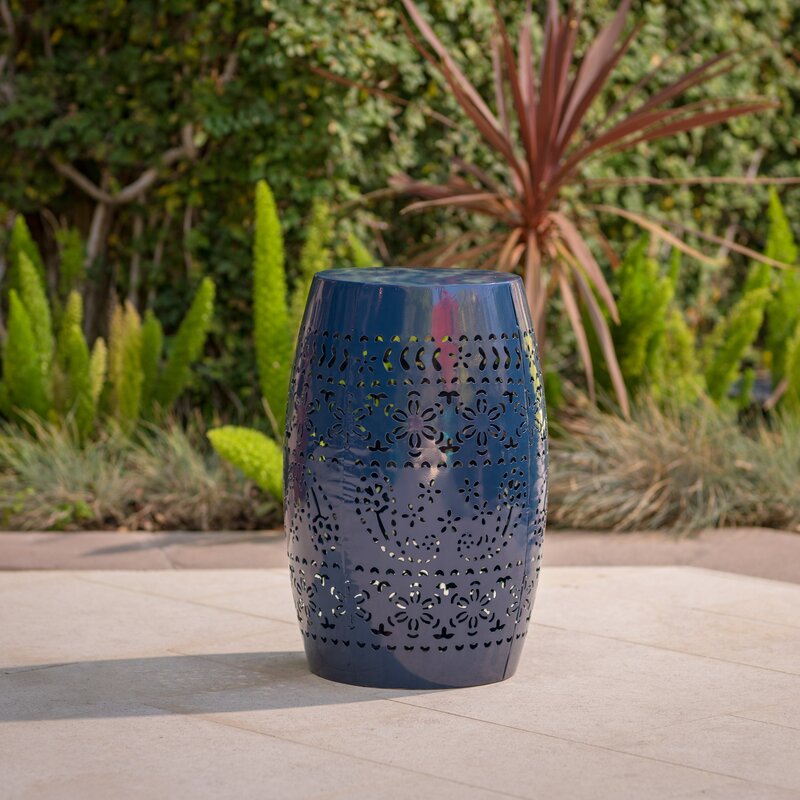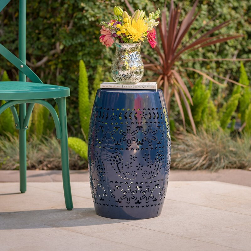 Whether you’re using this in your backyard space or in your living room, combine this accessory with your favorite chair to create a cozy corner. With a sleek, modern barrel structure, this end table is an excellent sidekick to your existing outdoor or indoor furniture, perfect for holding a tray of snacks or a pitcher of lemonade. The frame of our side table features a beautiful lace cut pattern, making this great for any area in need of something new.