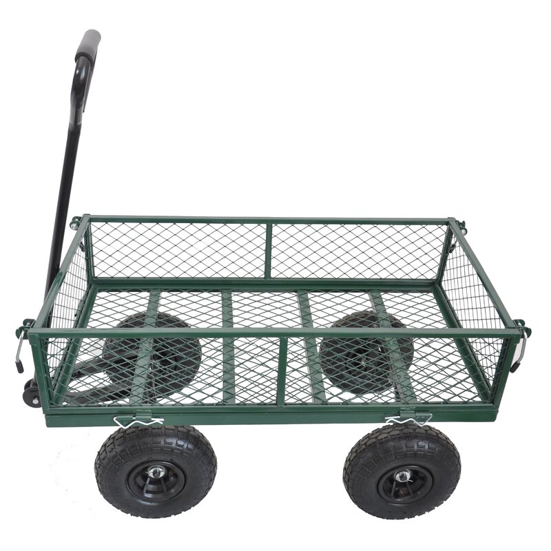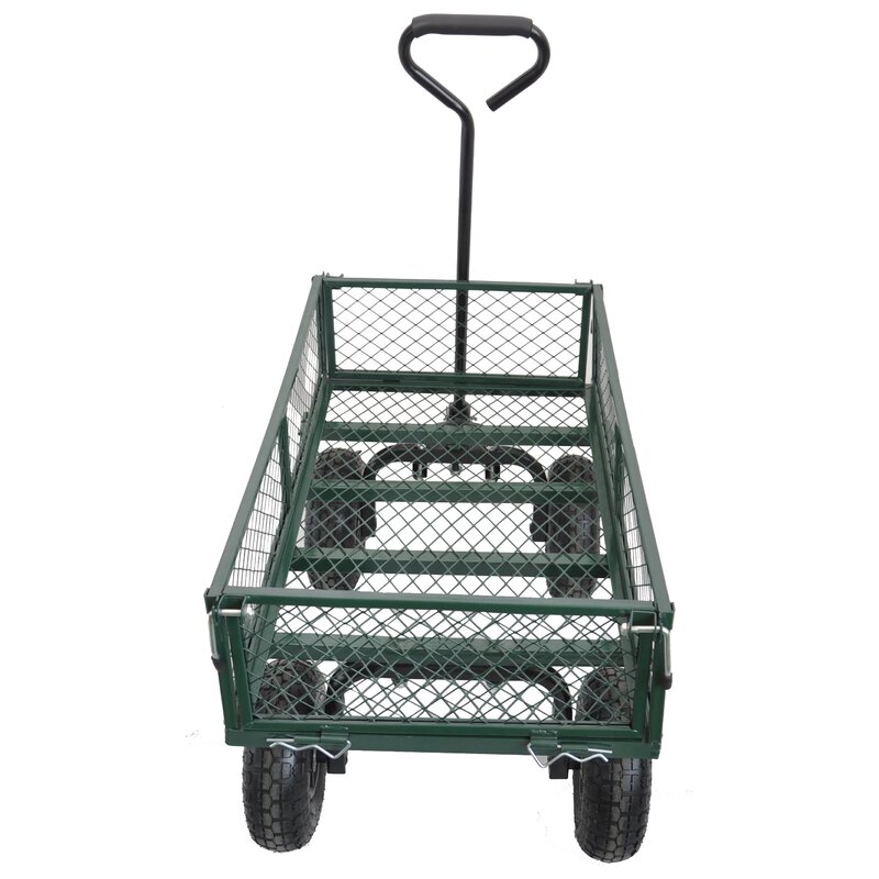 Wagon cart specifications: Overall dimensions: 37 x 19.48 x 40.15 inches, overall dimensions: 94 x 49.5 x 102 cm, wheel size: 10 x 10 x 3 inches, wheel size: 25.4 x 25.40 x 7.62 cm, handle length: 32.28 inches, handle length: 82 cm, net weight: 15.5kg, net weight: 34 pounds, maximum load: 249kg, maximum load: 550 pounds, material: steel frame and rubber tire