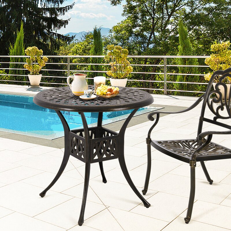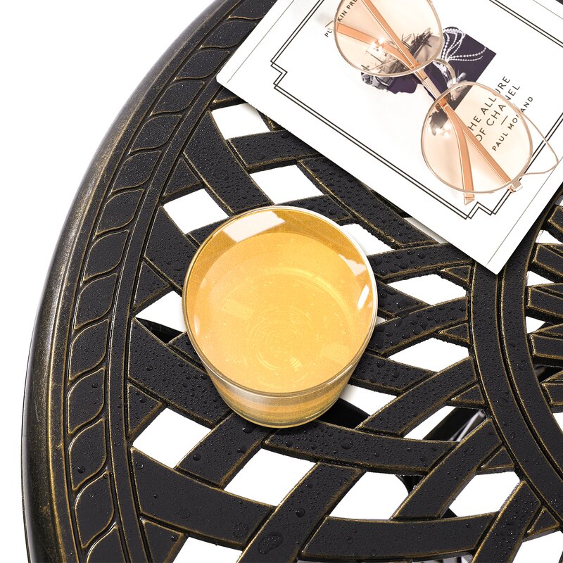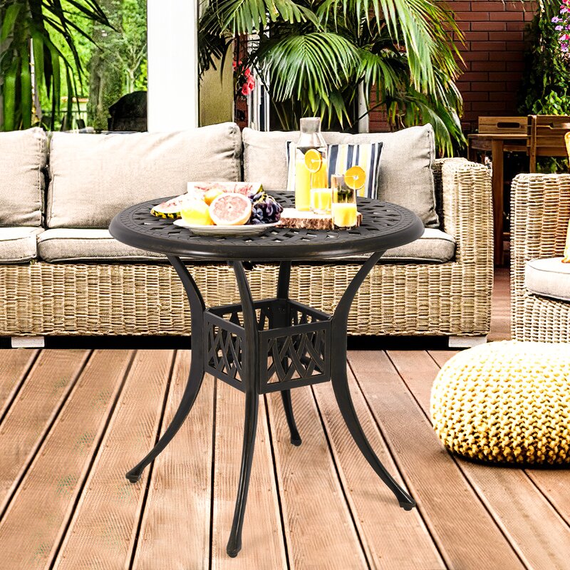 Exquisite Design: This cast aluminum table is designed with an antique hollow carved design, which not only can create a luxurious and elegant feeling, but also make your products unique. It is an ideal choice for you to enjoy leisure time with friends or family.