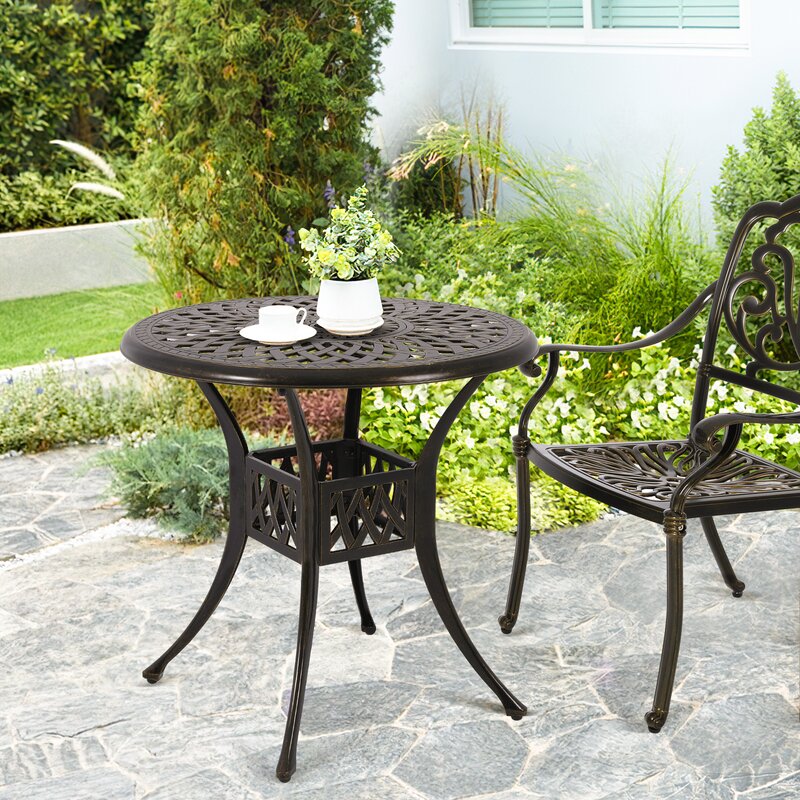 This cast aluminum table can be placed anywhere you want at home. You can put it outdoors in the courtyard, balcony, etc., without careful care. It has good rust and corrosion resistance and can be used for a long time. You can have afternoon tea and chat with your family or friends at this table, and you can also work or study at it. It is a very practical bistro patio dining table.