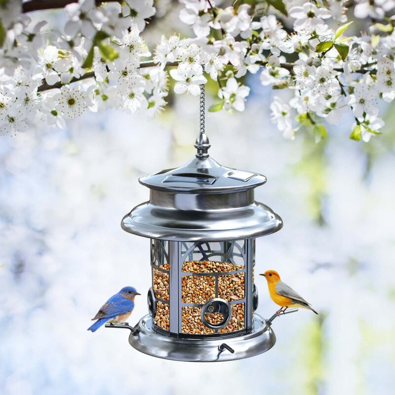 4 Perches around the rim allow multiple birds to dine from every angle without having to compete for ports. 4 Drainage holes help prevent soggy seeds.
