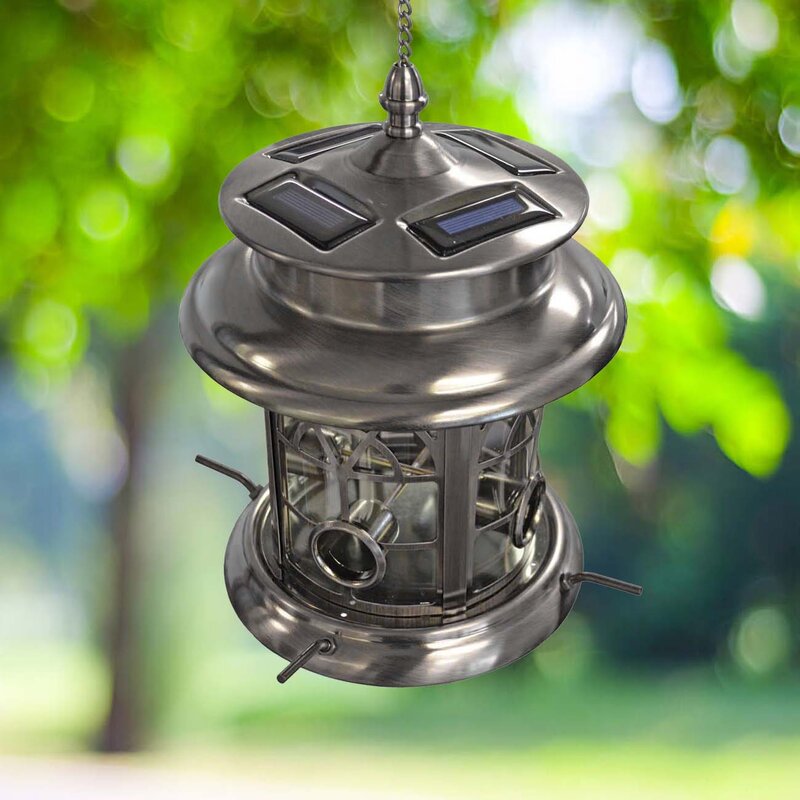 Solar-powered, auto on/off once charged, with 3 bright amber LEDs underneath the rim light up automatically at night, making it easier for “peckish” birds to find their food