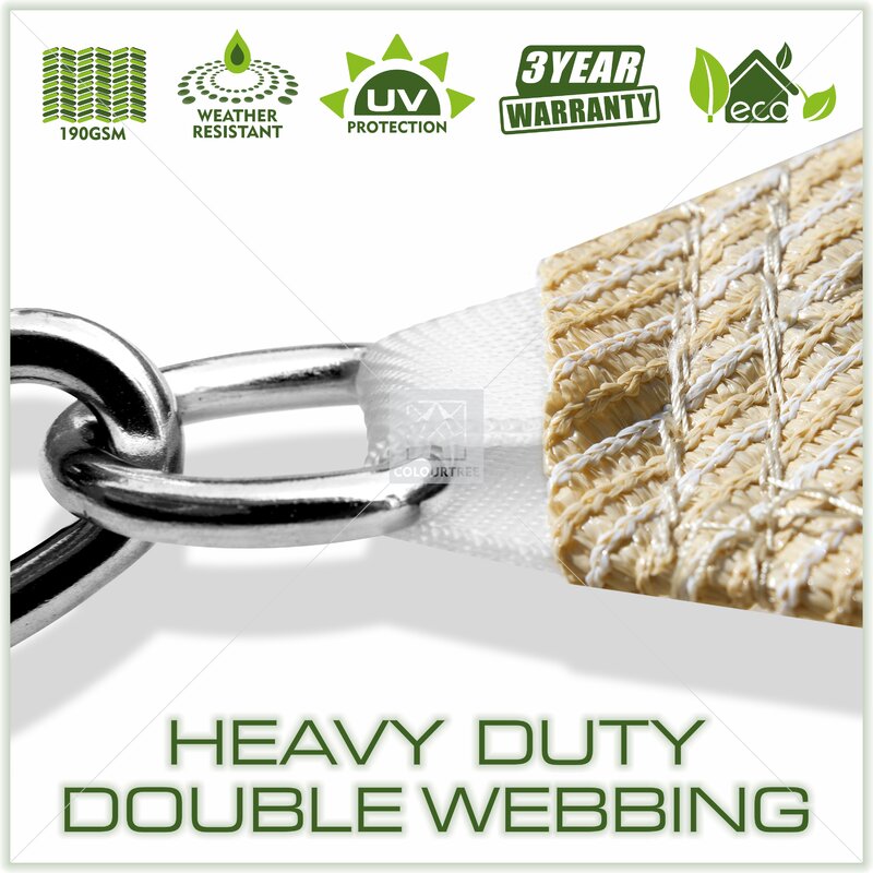 Burning up and getting beat down by the summer heat. Take back your home’s comfort with color tree sun shade sails, built with care and made of premium stainless steel grade 316 d-rings. Our shade sails are proven to hold up strong through wind, sun, and rain, all the while providing cool shade and 95% UV blockage as well as lowering the ambient temperature. Installation is easy with a corresponding color tree hardware installation kit. Hang them over your patio, lawn, garden, backyard, swimming pool, driveway, etc. To keep your area nice and cozy.