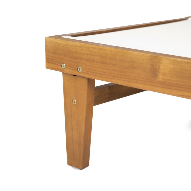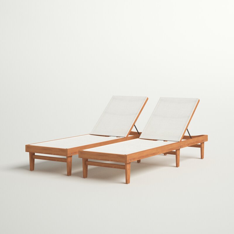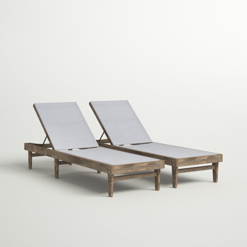 These outdoor chaise lounges are the perfect way to add some relaxation to your patio and backyard. Made from sustainably sourced acacia wood with a specially made mesh for the seat, these lounges are both comfortable and stylish. Enjoy these traditional-style lounges all summer long, and give yourself the freedom to relax with your favorite book or take a nap under the summer sun with these refreshing chaise lounges. Assembly is required upon arrival.