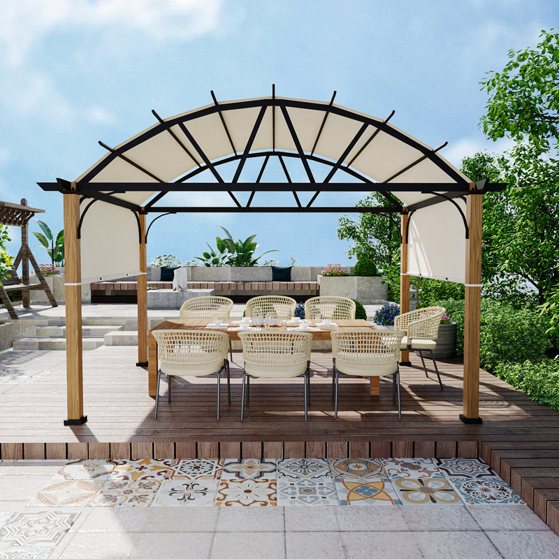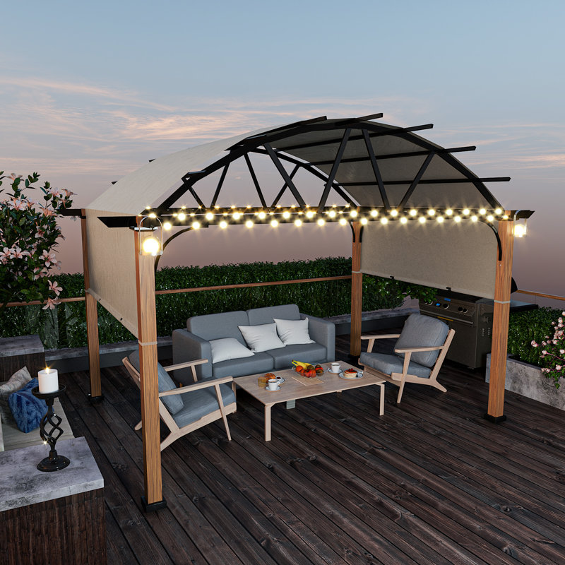 Wood grain frame – Gazebo is built from a durable, rust-resistant, and powder-coated aluminum, and adopt new thermal transfer printing, owns both a natural wood appearance and the advantages of metal.