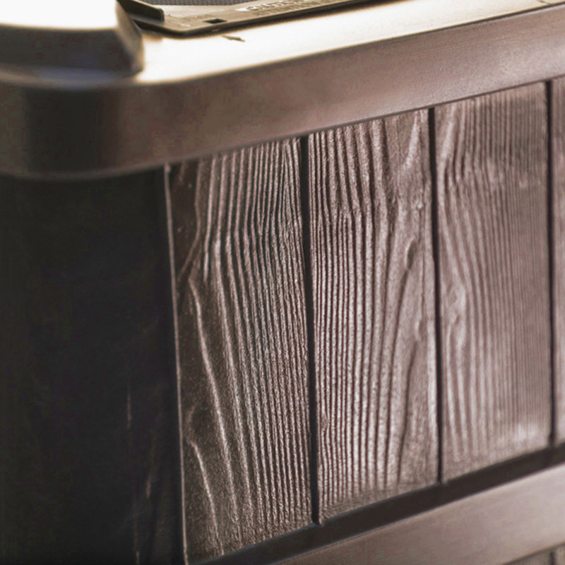The slim-line design of the wood grain rain barrel makes it ideal for smaller outdoor backyard locations.