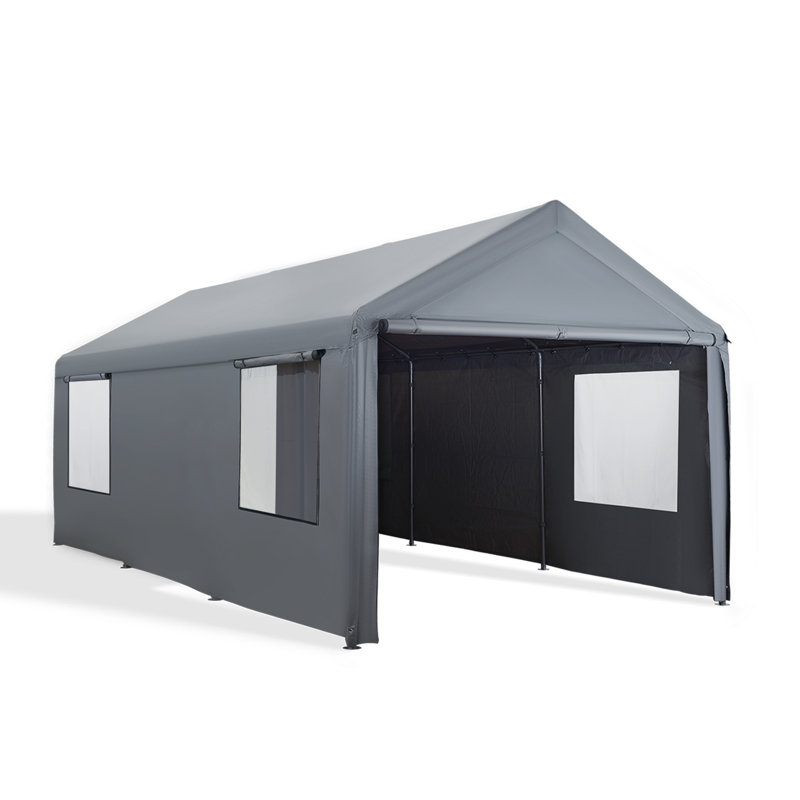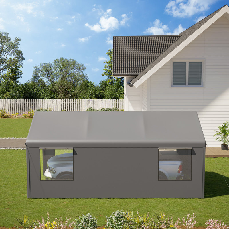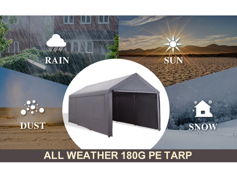 Roll-up ventilation windows design: There are 2 mesh windows on each sidewall that support much better ventilation compared to other carports, it can help with air flowing, and prevent moisture.
