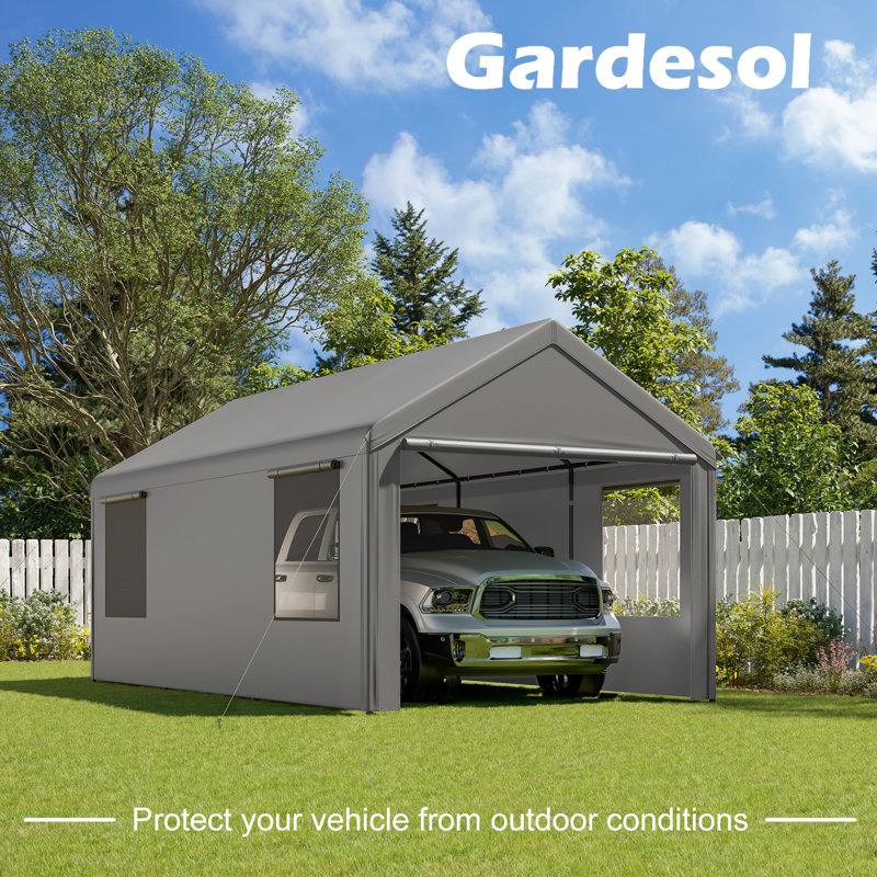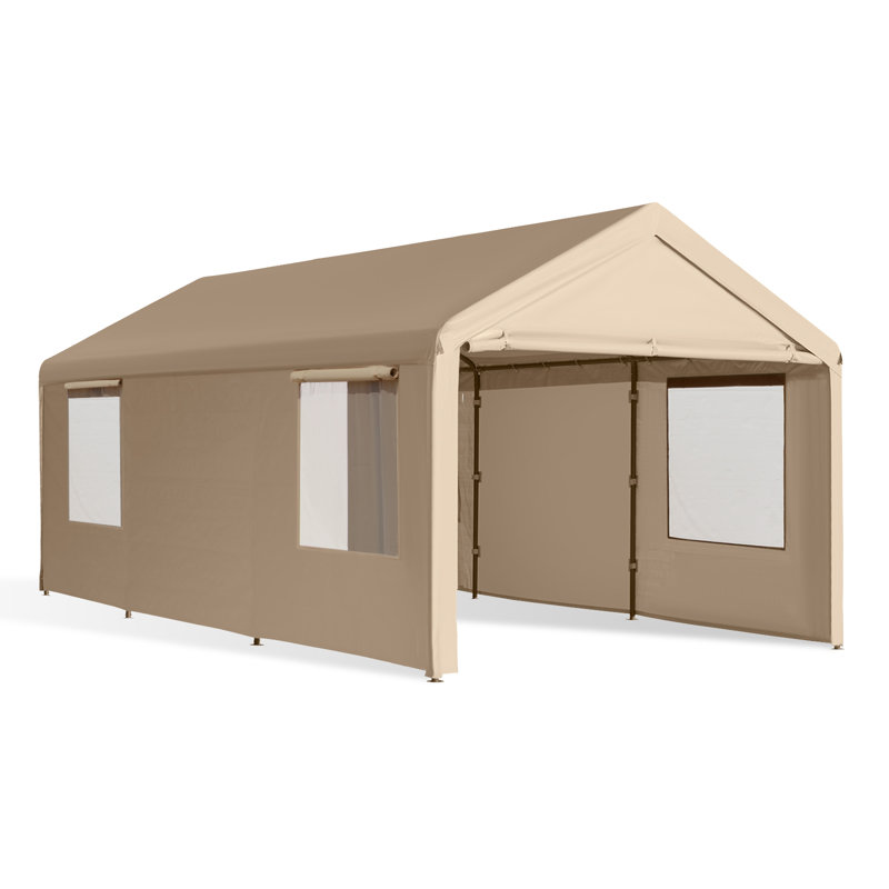 Gardesol carport, 10’x 20′ heavy-duty carport with roll-up ventilated windows, portable garage with removable sidewalls & doors for car, truck, boat, car canopy with an all-season tarp, beige.