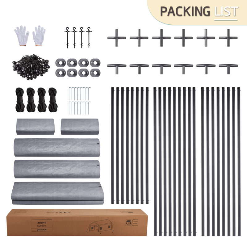 Heavy-duty carport construction: This carport shelter is made from a rust-resistant powder-coated steel frame that prevents chipping, peeling, rust, and corrosion. The 8 solid legs consist of 1.5-inch diameter and 1.2mm thick poles, It makes the whole steel carport much safer and more stable.