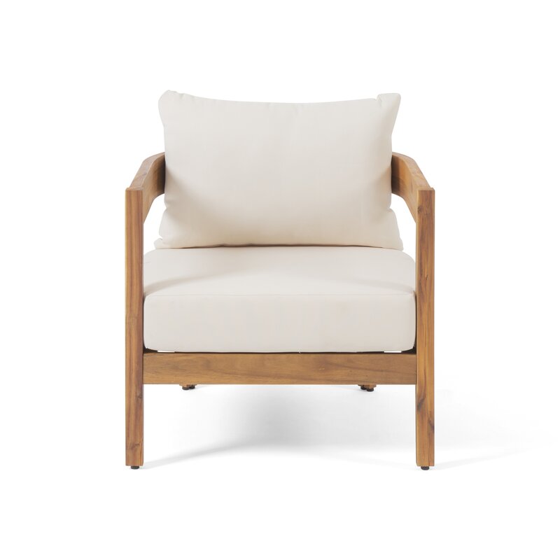 Soak in some sunlight in absolute comfort. Boasting rich acacia wood frames and a gracefully curved tub design, our set of two club chairs is both practical and pleasing. Its slat-paneled seating brings a classic feel to your outdoor space, while its plush cushions invite plenty of comforts so you can relax. Use this versatile chair set to style your backyard into one that you’ll love.