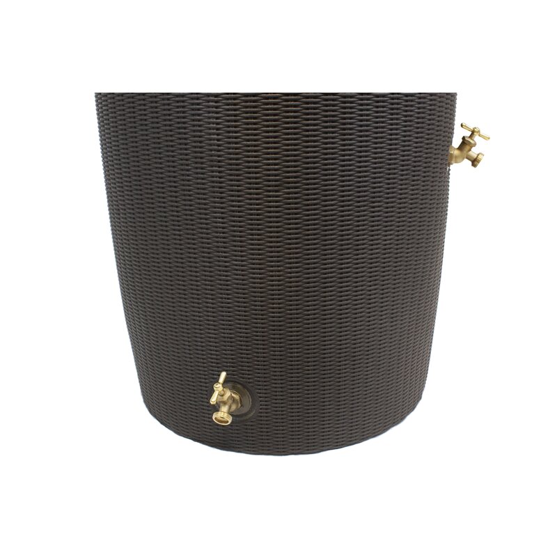 This rain barrel reinvents how you harvest rainwater. This 50-gallon wicker design is perfect for virtually any home. The most captivating feature is its appearance which emulates the rotund weave texture of a wicker storage bin. With a deep welled top, you can plant an array of floral arrangements or even a small herb or vegetable garden. The top also includes the original, integrated overflow channel. This channel automatically diverts all overflow water to the front of the barrel and keeps your foundation from flooding. The large opening which can be used for 2 x 3 or 3 x 4 downspouts are covered with a soft, fine mesh, plastic screen. This screen keeps out heavy debris and insects for your peace of mind. Also included with the barrel are the two, offset spigot locations. Now you can use a 5-gallon bucket or hose simultaneously without issue. Or use the second spigot as an overflow into a second barrel. Who knew you could have so many features in a rain barrel? Impress your friends and neighbors with this 50 Gallon Rain Barrel.