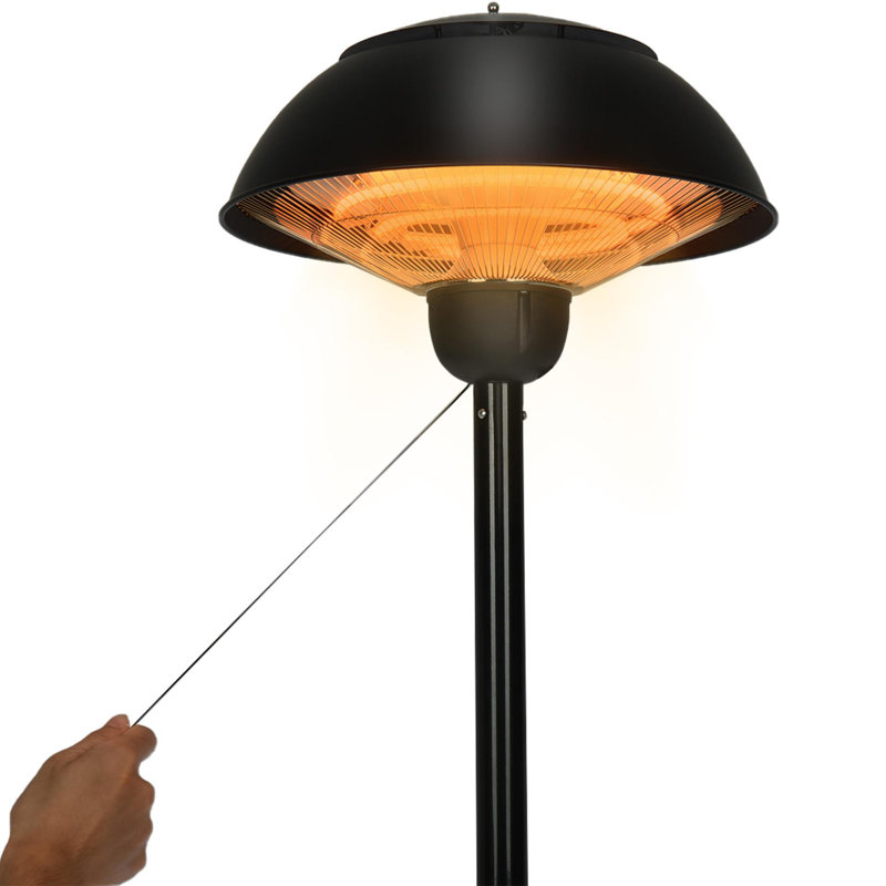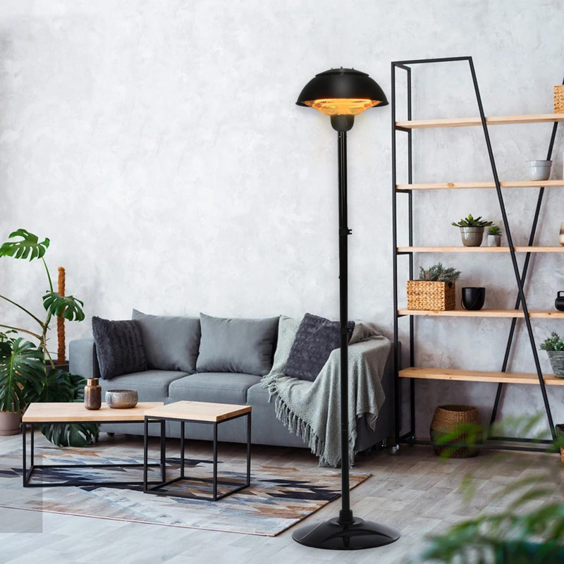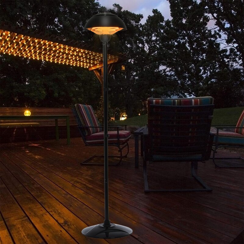 Assistant Warmth, Quiet & Infrared Heater:Up to 1500W power, Electric patio heater adopts carbon infrared heating technology, which can quickly release heat and it is very quiet. It is better to use as assistant and nearby heater.Tip-over Protection:Outdoor patio heater has a tip-over protection function. It also has a thick and stable circular base to avoid tipping. Even if when your child or pet accidentally hits the heater and tips over, it will automatically cut off the power which keep your family safe. In winter if there is strong wind outside, you do not need to worry about the heater tipping over and causing safety hazards.Energy Saving & No Odors Or Fumes:One clear halogen heating pipe can directly transfers heat to the body in the form of radiation, instantly heating up which saves energy.In addition,electric infrared heater do not produce odors, chemicals or fumes. Compared with traditional propane heaters, this heaters are more environmentally friendly.Indoor or outdoor use:Patio heater is made of high-quality Stainless Steel, frosted surface and has been certified with IP44 waterproof and rain&dust resistant that suitable for both indoor and outdoor use. You do not need to move it indoors unless it is very bad weather conditions. With an operating power as high as 1500W, it’s the perfect 360°all round heating solution for areas such as gazebos, patios, outdoor cafes/restaurants, garages, balconies, BBQ, workshops and any other living room.Simple installation & easy to switch:Freestanding electric patio heater size: Diameter is 17.3 inches and height is 78 inches; 120V,60Hz,1500W. It is very easy to install and only partial assembling is needed. Two adjustable height from 6.5 ft to 5 ft with dismountable pipes make this heater more user friendly. It has a cord switch that easy to contral the heater. Don’t tou/ch the heater at work to avoid scalding.