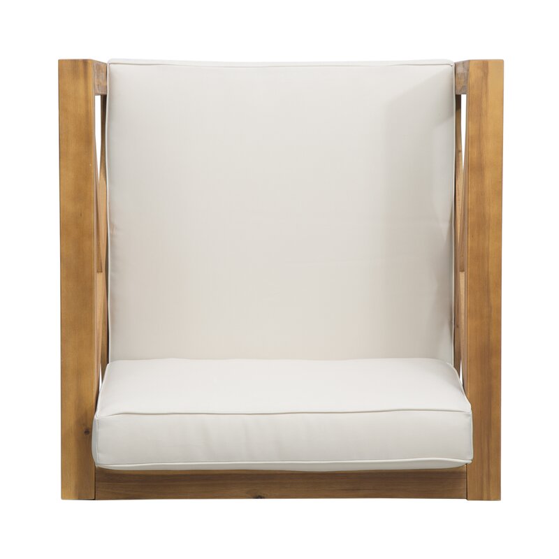 Spruce up your patio furniture with this product that brings unparalleled comfort and impeccable style to any outdoor setting. This club chair enhances your patio with a flawless combination of fresh colors and a mid-century modern look. Whether you want to accent your other patio furniture or use this as a standalone, this is perfect for arranging however you, please. With solid acacia wood frames and plush outdoor cushions, this chair offer hours of fantastic conversation for you and your guests for years to come.