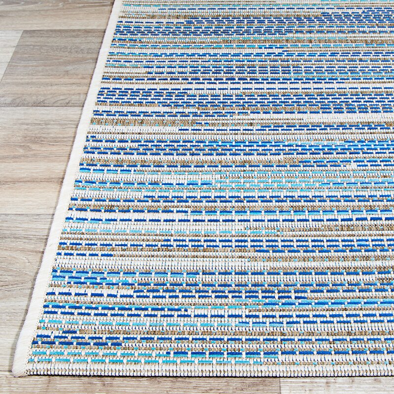Victorine Flatweave Sand/ Turquoise/ Azure Blue Indoor/Outdoor Rug