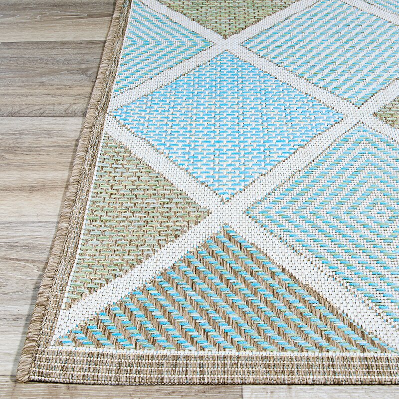 Whittier Flatweave Aqua Blue/ Sand Beige Indoor/Outdoor Rug