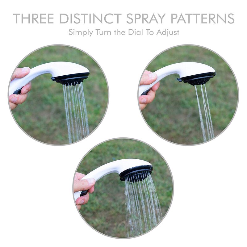 Comfortable Campsite Showers – Includes Water Temperature Control Knob, Hand Faucet/Spigot & Shower Head Attachment w/ [3] Adjustable Spray Patterns