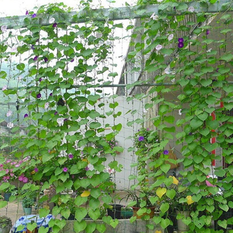 Trellis netting saves space and supports plants including beans, tomatoes, and cucumbers to vines and flowers. Can even be used.