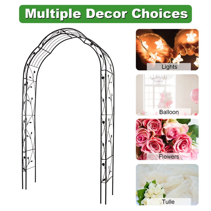 Versatile usage: The arbor garden arch can be supported by vines and climbers beautifully. Great arbor for important events such as weddings, anniversaries, birthday parties, Christmas decorations,s or other festivals.