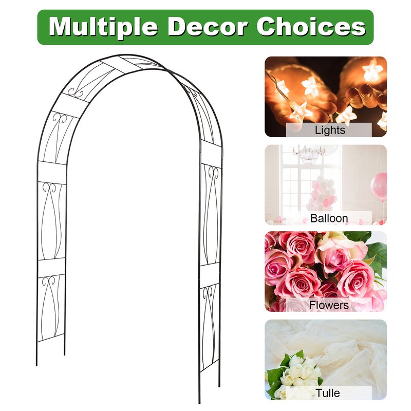 The garden arbor features classic yet fancy outlines and provides an archway for climbing plants, perfectly decorating your garden and yard.