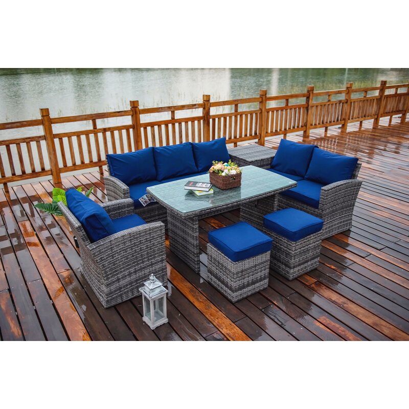 Vernis Polyethylene (PE) Wicker 8 – Person Seating Group with Cushions