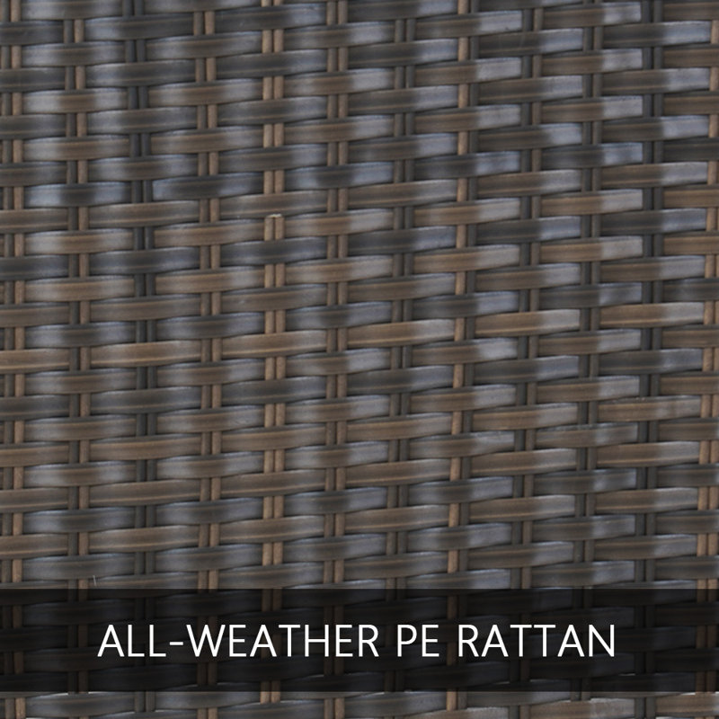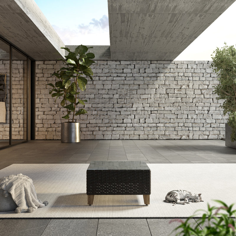 The main material used for this outdoor coffee table is rattan, and its biggest feature is that it is UV-proof and can be used well outdoors, while the top is placed on a glass plate to make it more flat, and the high-strength glass is very strong.