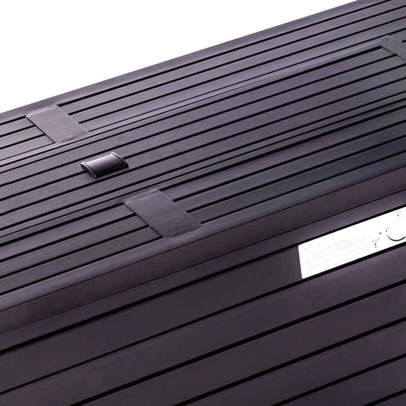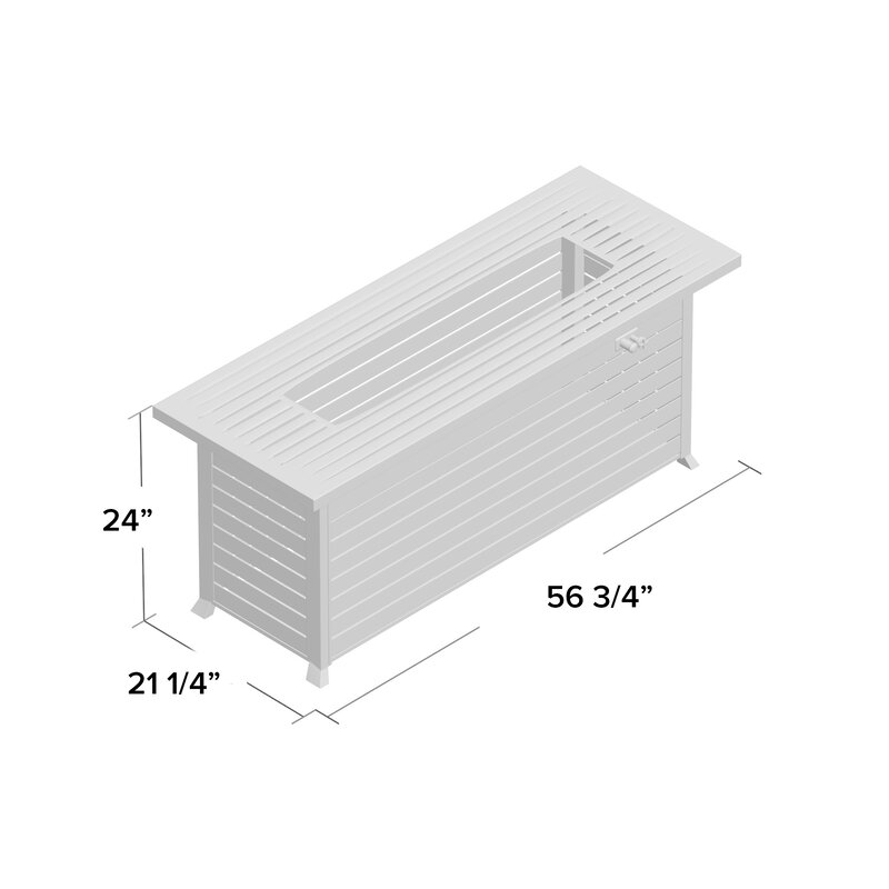 The rectangular fire pit with cover is a versatile piece of patio furniture that you’ll find yourself using all year round. The frame is built from sturdy steel, protected from the elements by a mocha finish, and designed with a steel bar look. A standard 20lbs. A liquid propane tank (stored inside, tank not included) is all you need to produce up to 50,000 BTUs of warmth from the stainless-steel burner. A bag of clear fire glass is included. A weather-resistant cover is included for longer-term protection.