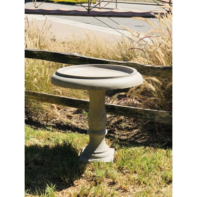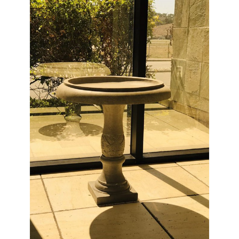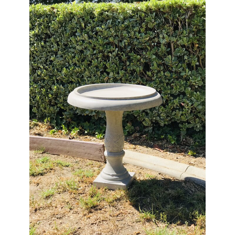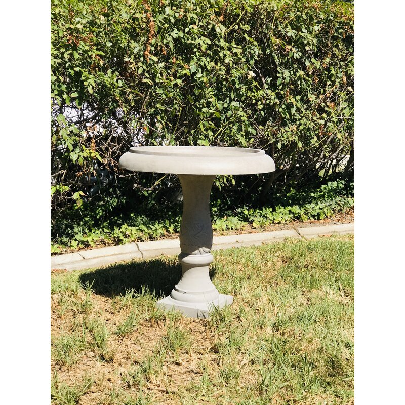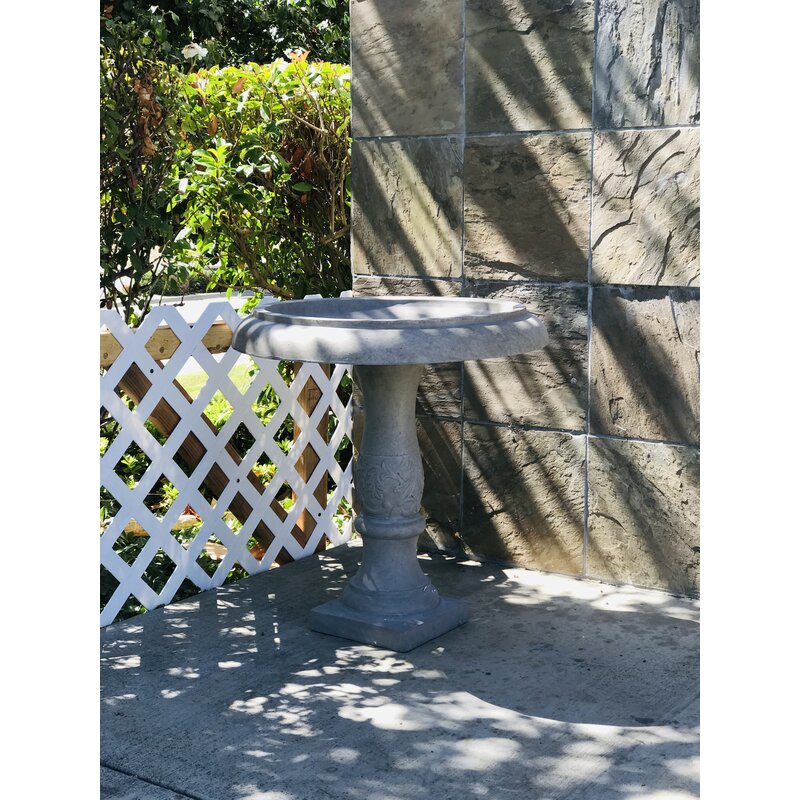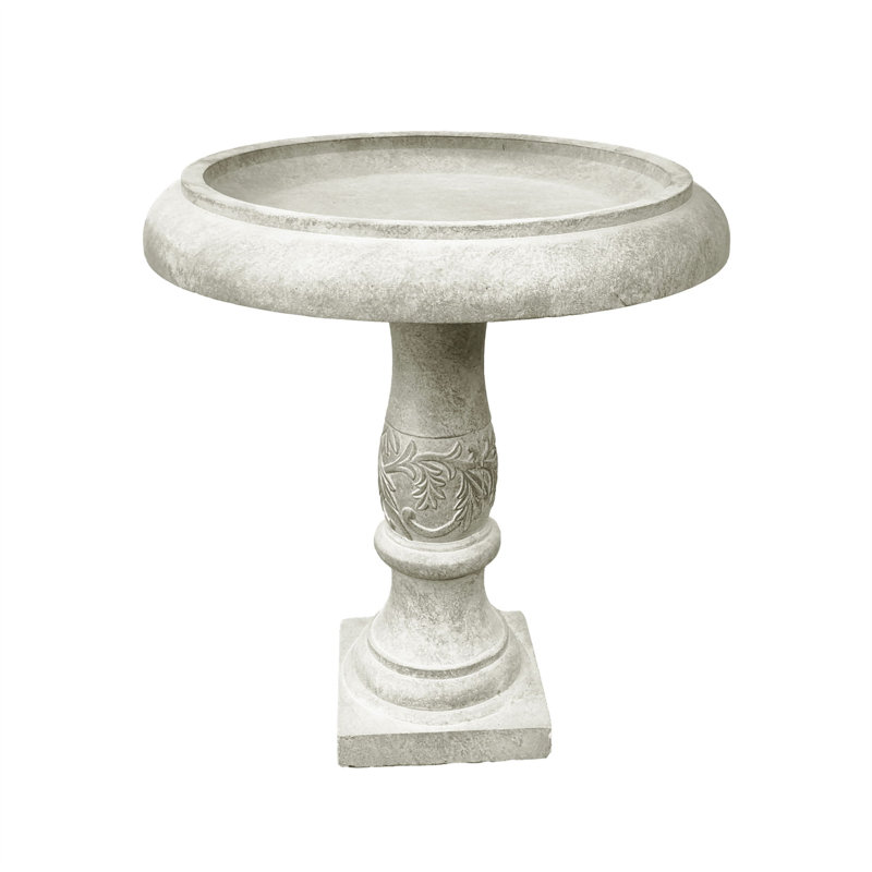 A traditional bird bath featuring a flower that is engraved along the rim of the bowl. A classic piece that is pleasing to the eye and that will draw attention to your garden. Made of Lightweight concrete through an ecofriendly manufacturing process. This composite material has no rubber, plastic, or steel. This material has all the advantages of concrete such as strength, durability, weather, and damage resistance. This material has a strong UV-resistant ability and stays well in the wind, rain, and hot and cold seasons. By adding fiber clay material, a birdbath is much easier to move around due to its lighter weight.