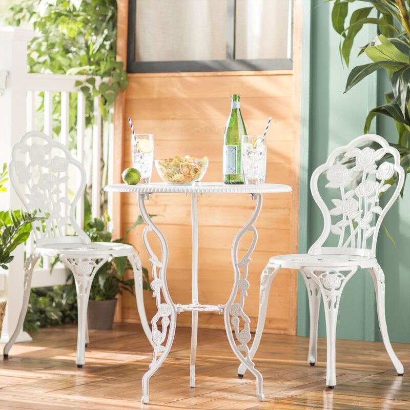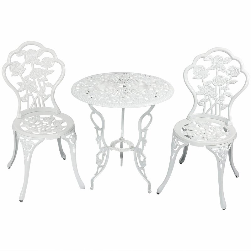 Made from weather-resistant cast aluminum material with cast iron legs so you can enjoy this bistro set for many years to come
