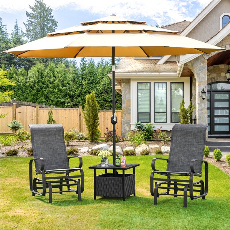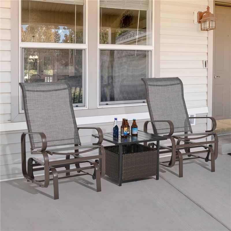 Weather-resistant patio furniture: Supported by a powder-coated steel frame, the Texteline glider chair boasts high strength, good durability, and weather resistance. The well-constructed structure and hardy materials can easily hold up to 300 lbs.