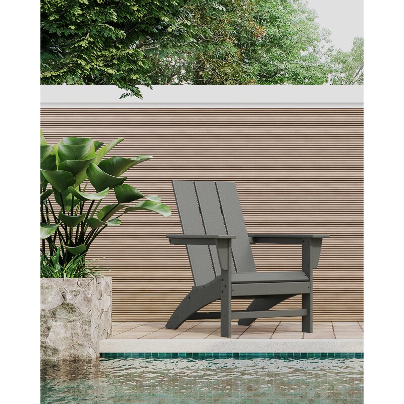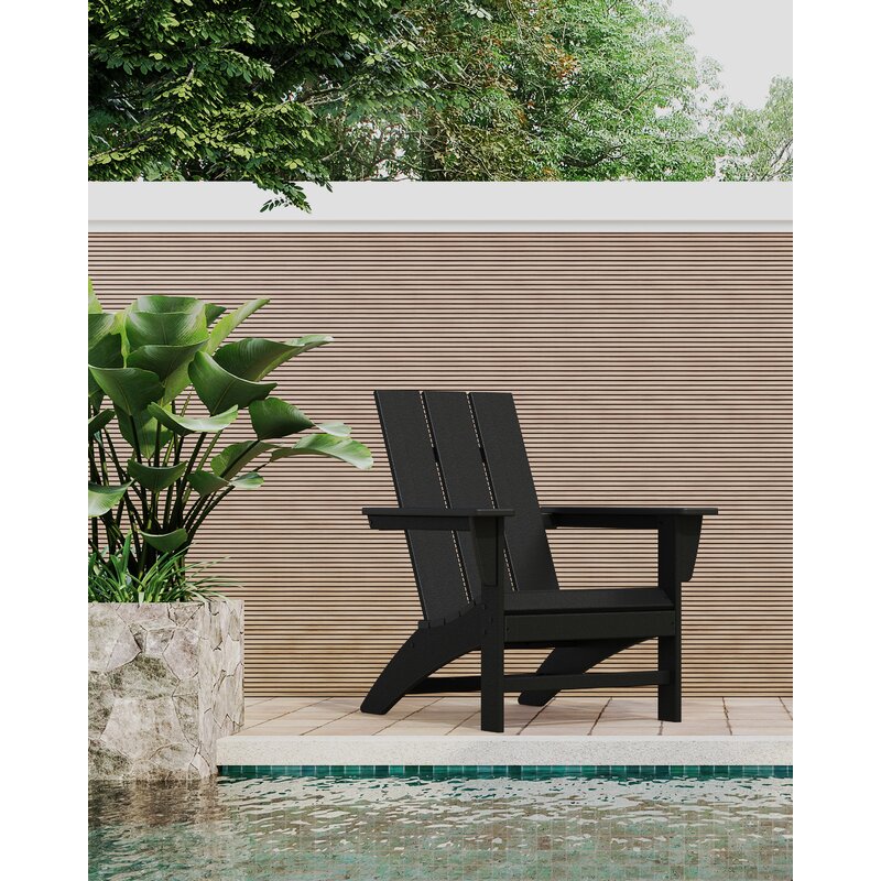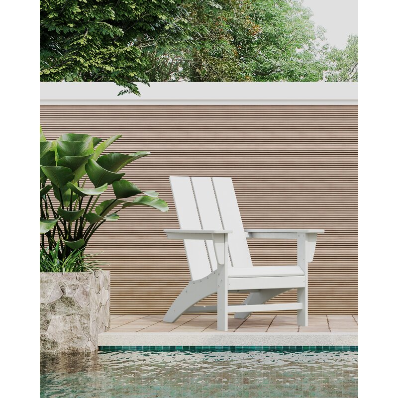 Laze the day away in the modern Adirondack chair, complete with a comfortably contoured seat and waterfall front. With a modern back style and sleek leg profile, this contemporary Adirondack is the perfect blend of style and comfort.