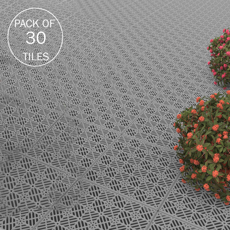 Constructed from weather and fade-resistant materials, this 30-pack of outdoor pavers enables airflow and water drainage for durability.