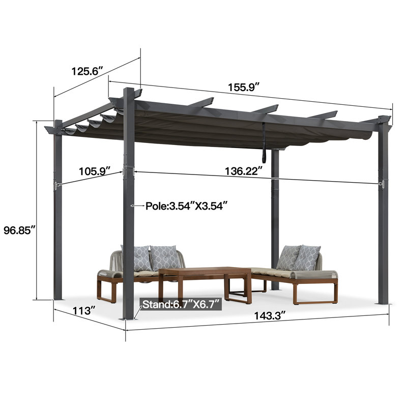 13 Ft. W X 11 Ft. D Aluminum Pergola with Canopy