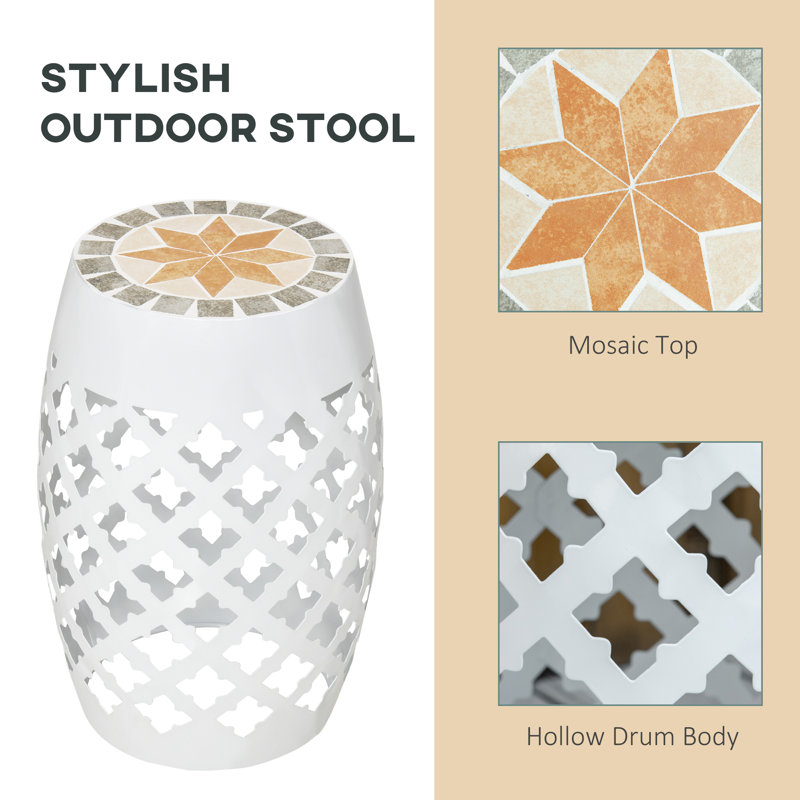 Easy To Maintain: The steel frame and smooth mosaic top make the round garden stool easy to wipe clean and maintain.
