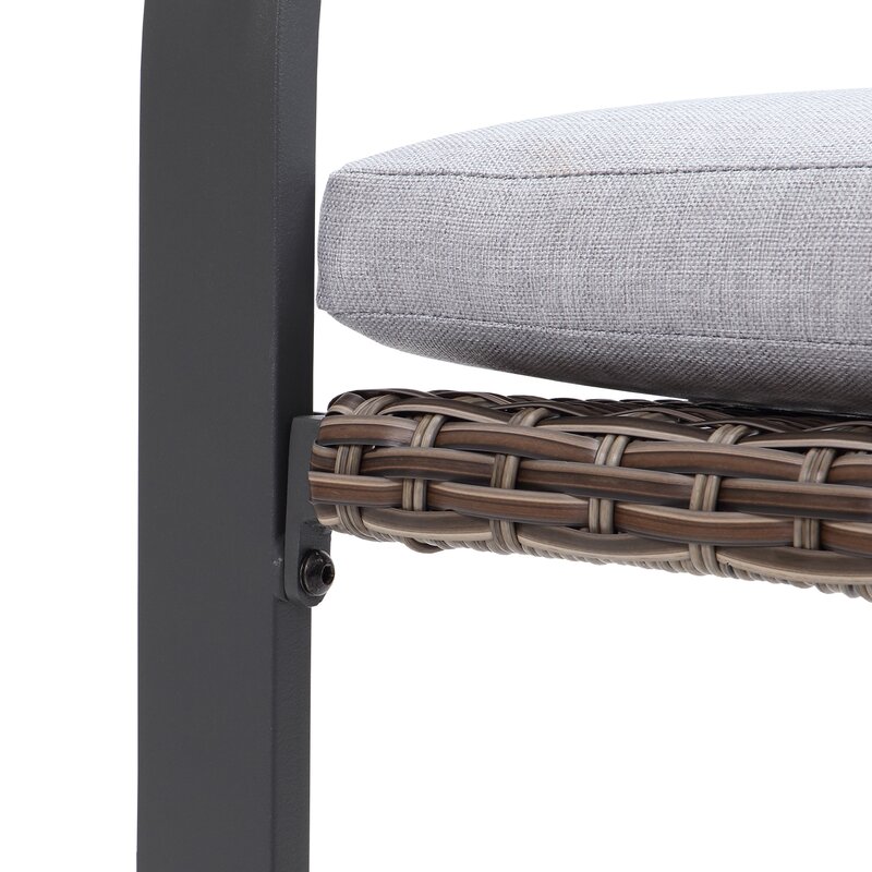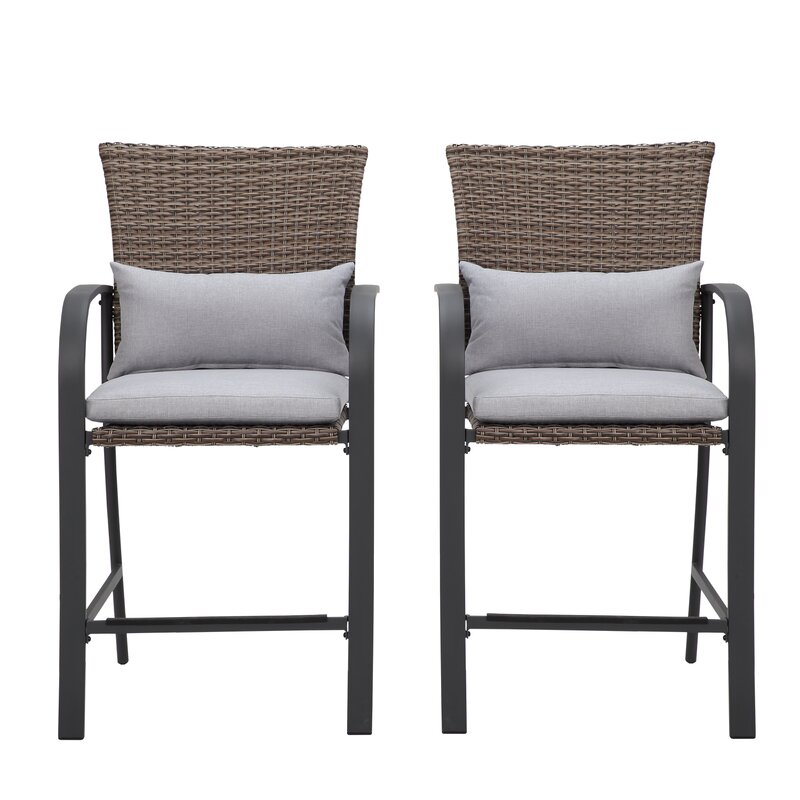 Give guests a place to perch at the outdoor bar with this pair of breezy stools! A metal frame is wrapped in wicker for a textured touch that recalls laid-back days by the beach, while its full-backed design combines a must-have footrest and curving armrests to encourage comfort and relaxation as you sip cocktails or enjoy an alfresco meal.