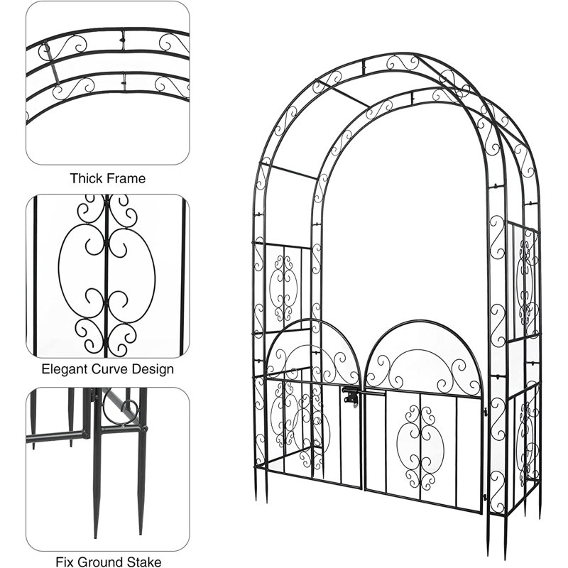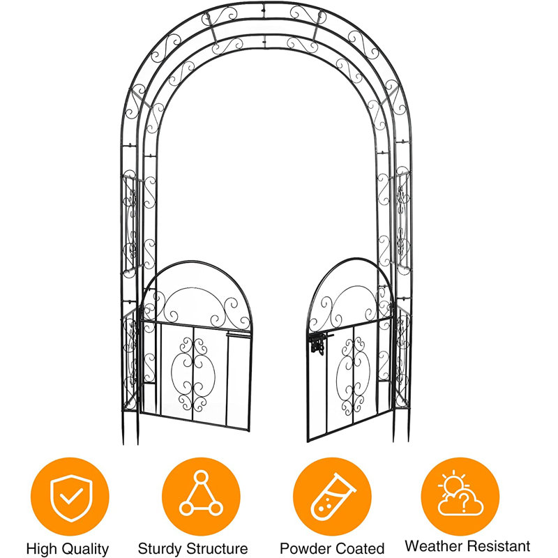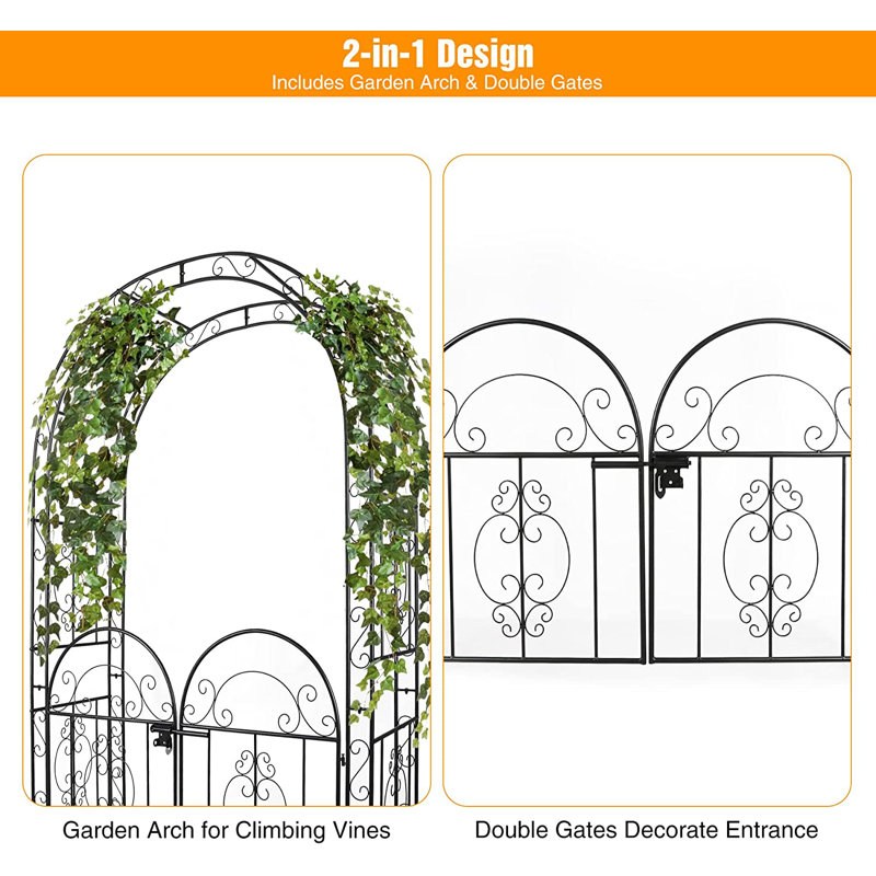 This elegant garden arch in a 2-in-1 design features garden arches and double doors. Garden arches are used to climb vines, while double doors decorate the entrance. It can be placed in a wedding or vow renewal, patio, porch, garden, patio, lawn, or seeder. It is ideal for decorating and supporting a wide variety of plants. It can meet your different needs.
