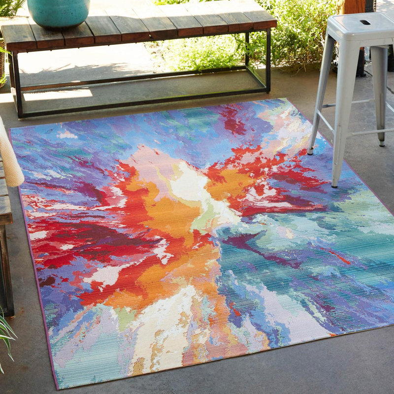Geraldine Blue/Red/Orange Indoor/Outdoor Rug