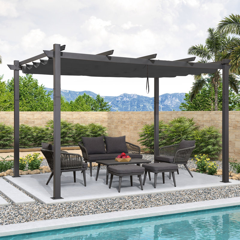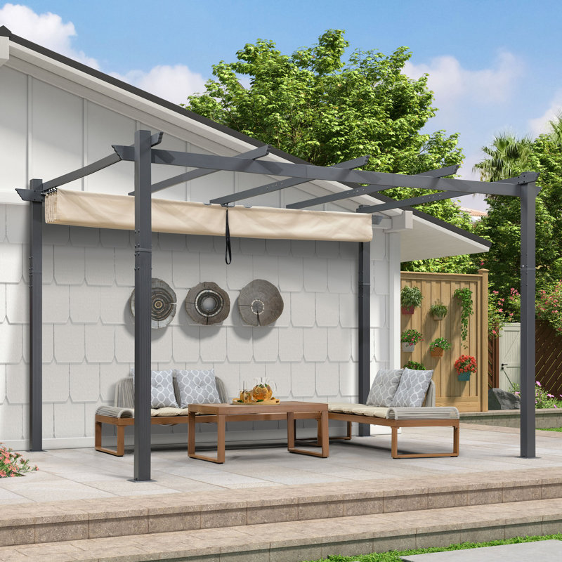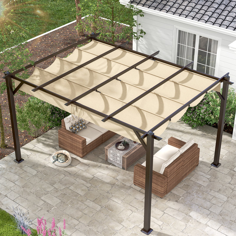 13′ X 10′ Retractable Pergola, Patio Gazebo Grape Trellis with Removable Sun Shade Canopy