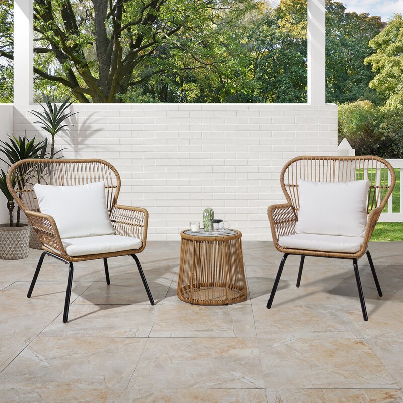 Tapan Polyethylene (PE) Wicker 2 – Person Seating Group with Cushions