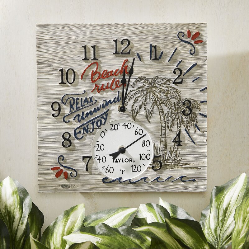 Taylor Precision Products, Beach Rules Poly Resin Clock and Thermometer, 14 Inch, Multi-Color
