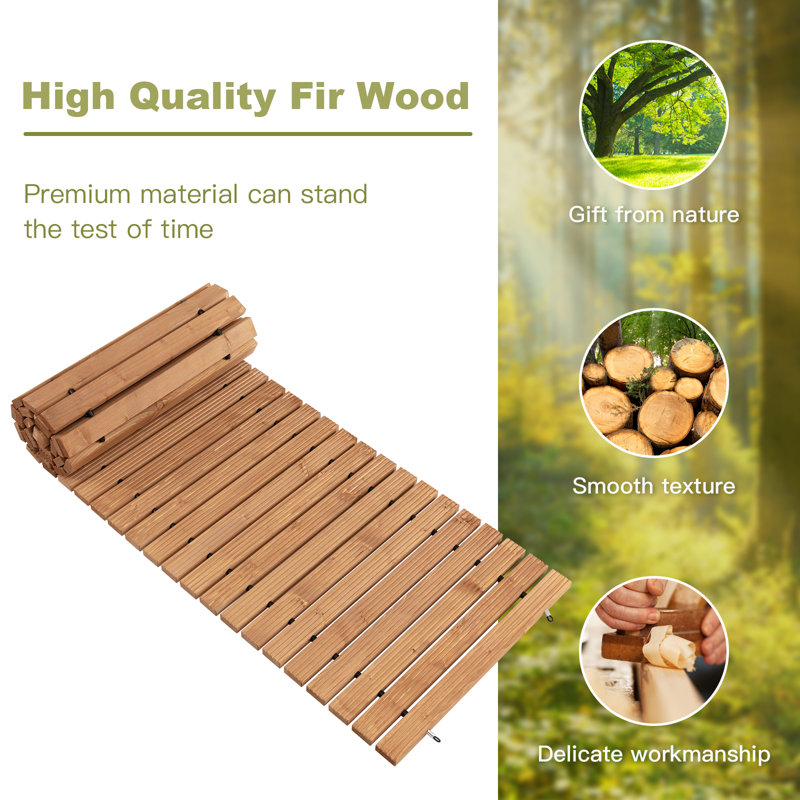 After you receive the package, you just need to spread the walkway and then put it on the muddy path or gravel road that effectively protects your feet from damp mud or harsh stones. What’s more, the 42 pieces of weather-resistant fir wood are joined by anti-rust steel wire ropes and aging-resistant rubber spacers, which not only ensures the firm connection for stability, but fits the outdoor environment for durability. Moreover, the anti-slip surface is safe to walk. If you do not need it, just roll it up to a compact size for easy storage and space-saving.