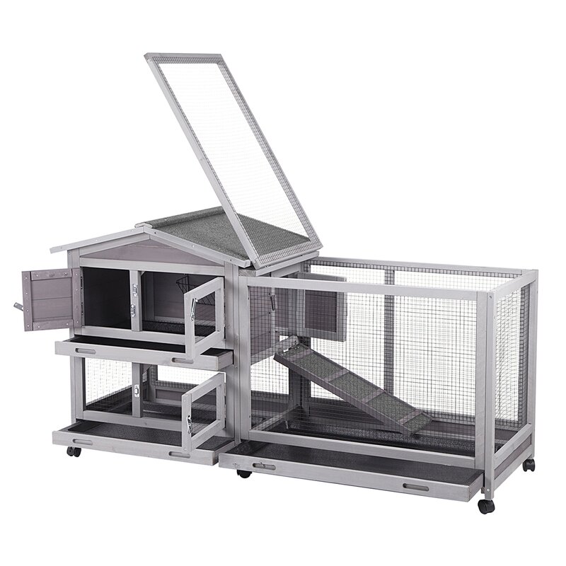 Rabbit hutch with a deep removable pull-out tray! Not leak! Better plastic quality, easy to clean!
