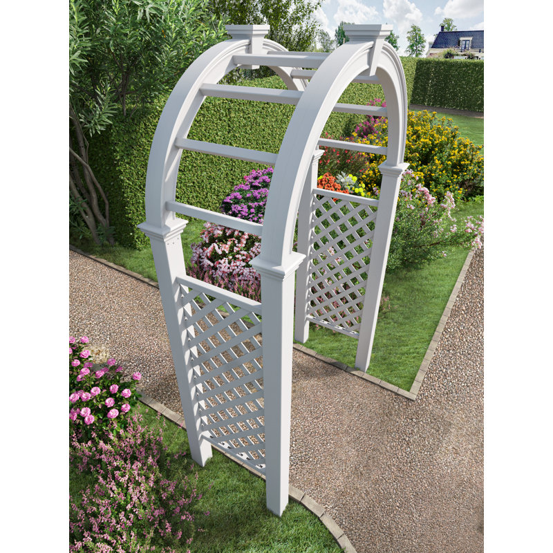 The Nantucket Legacy Arbor is designed with traditional architecture and authentic lattice detail, It is an elegant and timeless addition to any outdoor space. Crafted with premium weather-resistant vinyl, the Nantucket Legacy Arbor is maintenance-free and built to last. Simple to assemble and install and comes with a 20-year limited warranty against manufacturing defects.
