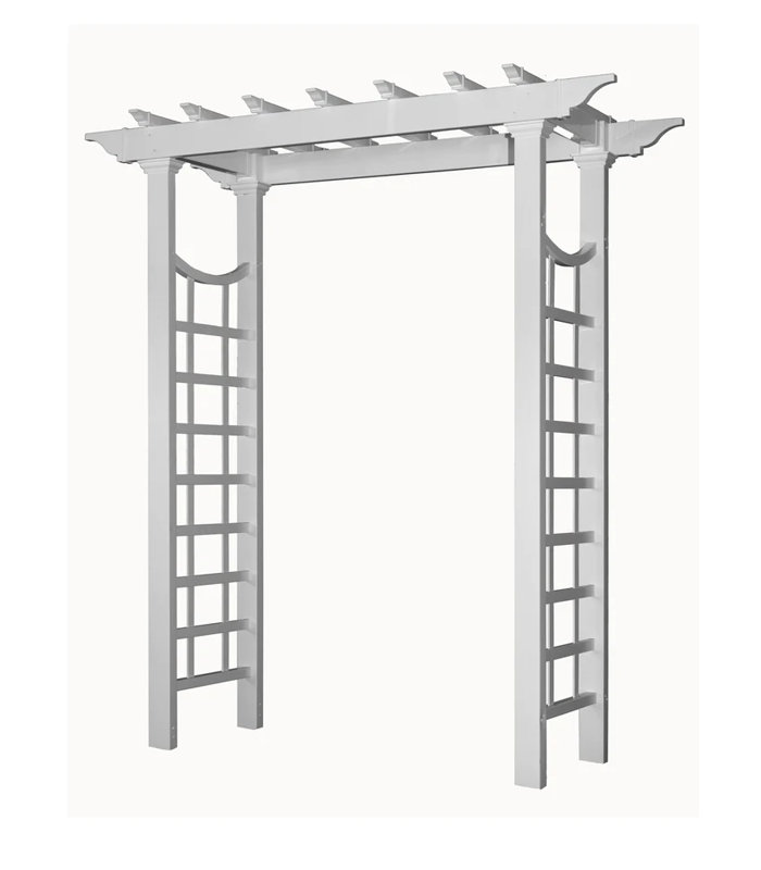Transform your garden into a retreat using the Eden Westhaven Arbor. When placed at the entry to your yard, this striking structure easily forms a haven for you and your guests. The flat top of this unit brings clean lines and angles to the item, furthered by its square lattice side panels. A slight curve at the top of each lattice panel, combined with the overhanging vertical rails, captures attention and brings contrast to the unit. Additional trim caps on each leg complete the effect, and the white color adds a timeless feel. For more drama, plant vines or climbing flowers around each side of this arbor, and weave their tendrils in and out of the grid as they grow. The leaves and blooms will easily contrast the structure, and the vinyl construction offers years of service. This unit will not rot, yellow, or warp, for a perfect garden addition. Place the included anchors into the arbor’s legs to secure them into the soil. Add a bold look to your outdoor sanctuary using this Westhaven Arbor. Assembly required. Twenty-year warranty.